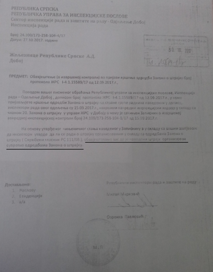 Pritisak na štrajkače iz Željeznica RS koji su se u septembru “drznuli” zatražiti ono što im po zakonu pripada, svakim danom postaje veći!