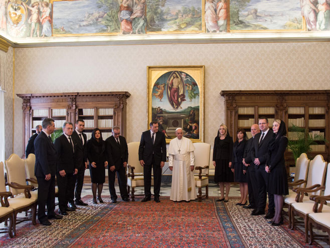 Današnji sastanak sa papom Franjom u Vatkanu je veoma važan kao i saradnja između institucija na različitim nivoima i BiH i Republike Srpske sa Katoličkom crkvom, te je neophodna toleranicija i saradnja sa svim vjerskim zajednicama, i hrišćanskim i islamskim, rekao je Milorad Dodik, predsjedavajući Predsjedništva BiH, nakon sastanka sa papom.