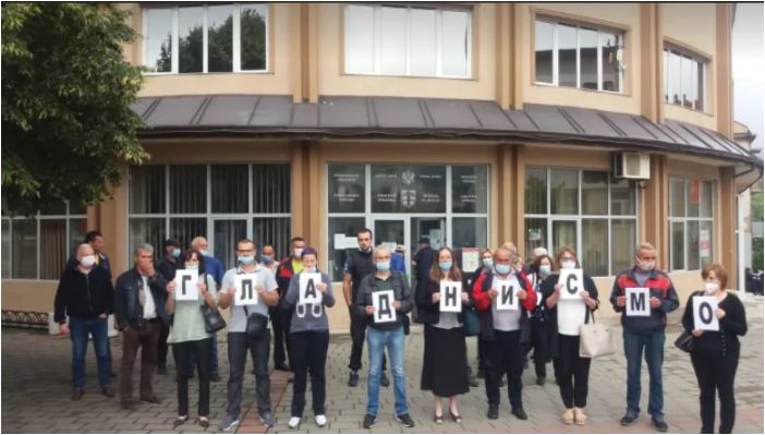 Radnici preduzeća Komunalne usluge kako su i najavili danas su protestovali ispred ulaza u zgradu Opštine Pljevlja, kako bi iskazali svoje nezadovoljstvo odnosom lokalne samouprave prema tom preduzeću čiji je osnivač.