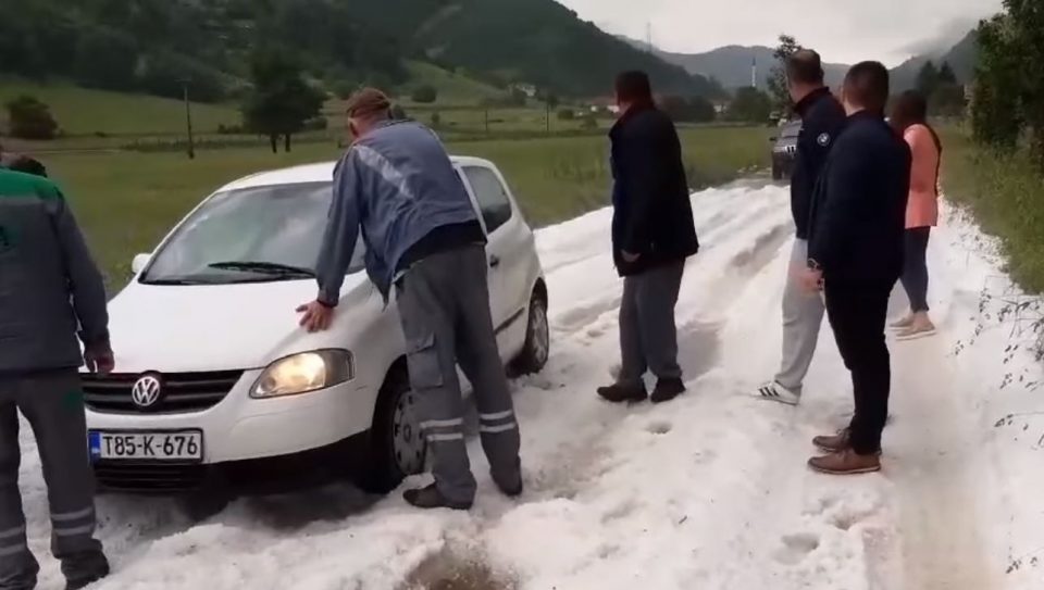 Veliko nevrijeme pogodilo je jutros područje Gornjeg Vakufa čije ulice je zatrpao grad, a neki automobili su se čak zaglavili na ulici pa su im prolaznici pritekli u pomoć.