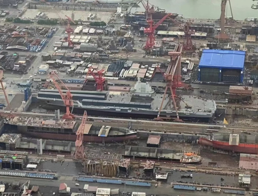 Na fotografiji se vidi nosač avion “Tip 003” koji se nalazi u posljednjoj fazi izgradnje. Vidi se i da je voda puštena u dio u kojem se gradi nosač aviona. Katapulti su mu ukrašeni, a zastave razvučene.