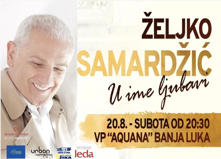 Koncert Željka Samardžića, u organizaciji Queen Estrade, održaće se na koncertnom prostoru VP “Aquana”, s početkom u 20.30 časova.