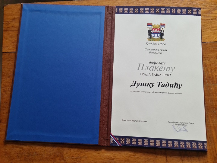 Humanista i sportista Duško Tadić, vidno razočaran odnosom institucija prema organizaciji “Trke za Srpsku”, koju je organizovao pet godina zaredom, odlučio je vratiti Plaketu koju je dobio povodom Dana Grada Banjaluka.