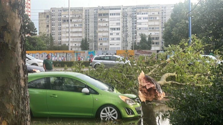 Snažan vjetar i obilna kiša napravili su haos u Zagrebu. Razoran vjetar nosio je sve pred sobom, a obilna kiša poplavila je ulice.