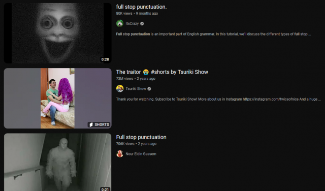 Dovoljno je u YouTube pretragu upisati samo tačku, i u rezultatima će se prikazati razni jezivi video-snimci, od kojih najmlađi mogu imati noćne more.