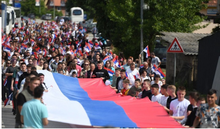 Građani su razvili veliku srpsku trobojku i u koloni prošetali gradskim ulicama.