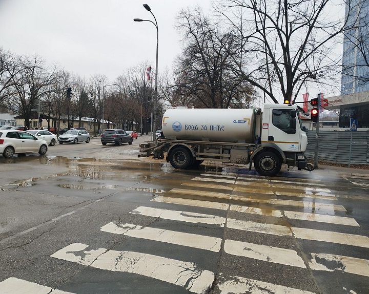 Kamion koji je upao u rupu na putu u Banjaluci je izvučen, a radnici preduzeća “Vodovod” čiste dio raskrsnice ulica Vuka Karadžića i Prvog krajiškog korpusa.