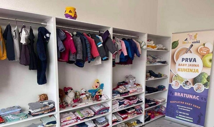 U okviru ove javne kuhinje nalazi se i dio sa besplatnom odjećom za bebe, koje jednom mjesečno dobijaju i higijenski paket koji sadrži pelene, šampon, kremu i mlijeko za bebe